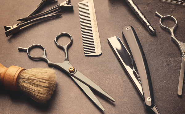 przybory do strzyżenia, jak brzytwy, grzebienie separacyjne i drobne akcesoria dla wymagających stylistów.